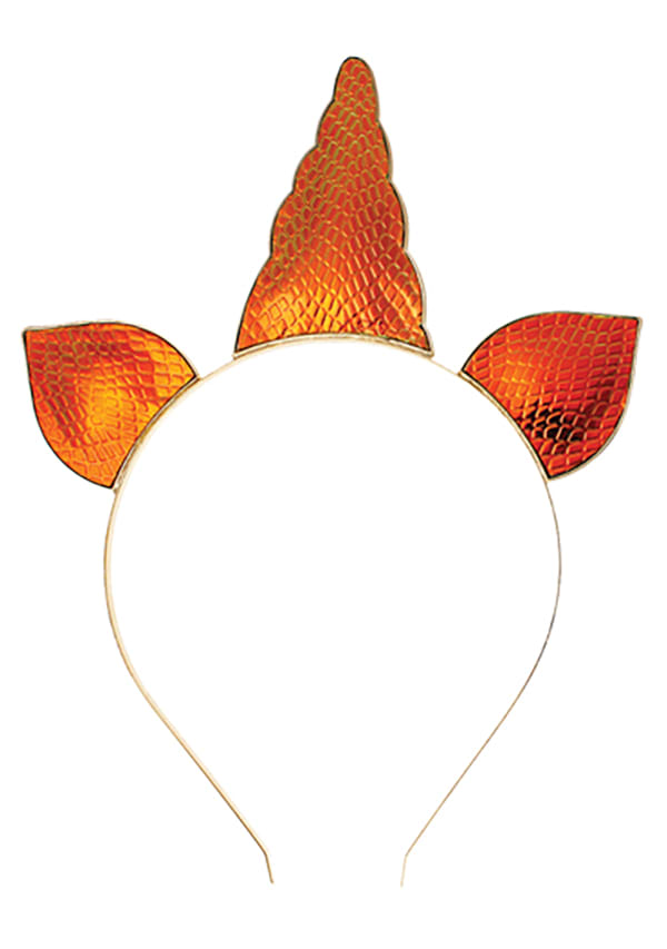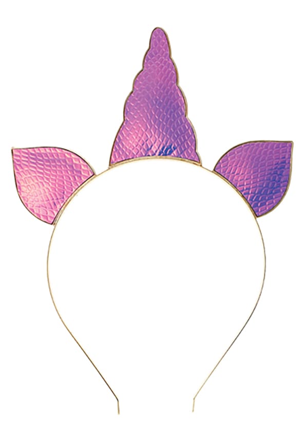 Unleash your inner unicorn spirit with this headband. This thin metal band sports iridescent ears and horn to complete our fantasy look.